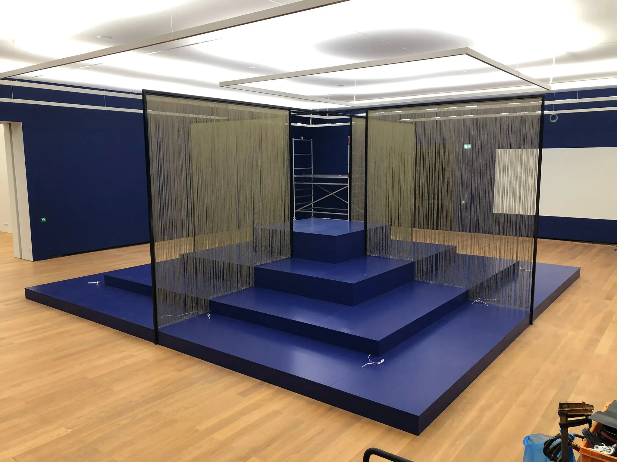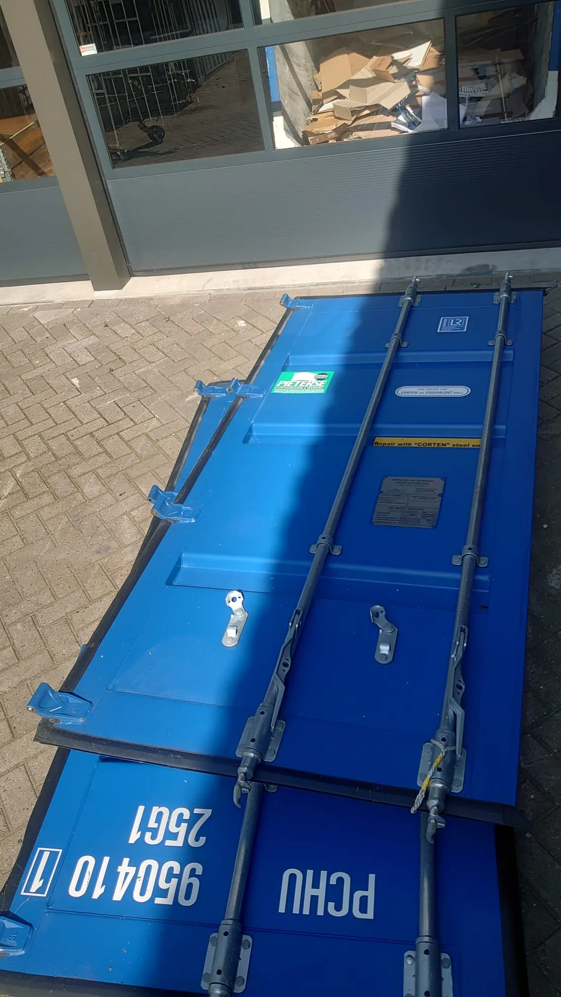 Demontabele glazen vitrine, stalen frame 1*4*2,8