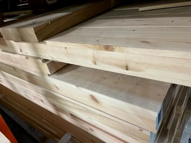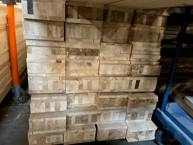 Te koop balken van 100% gerecycled hout uit de bouw.