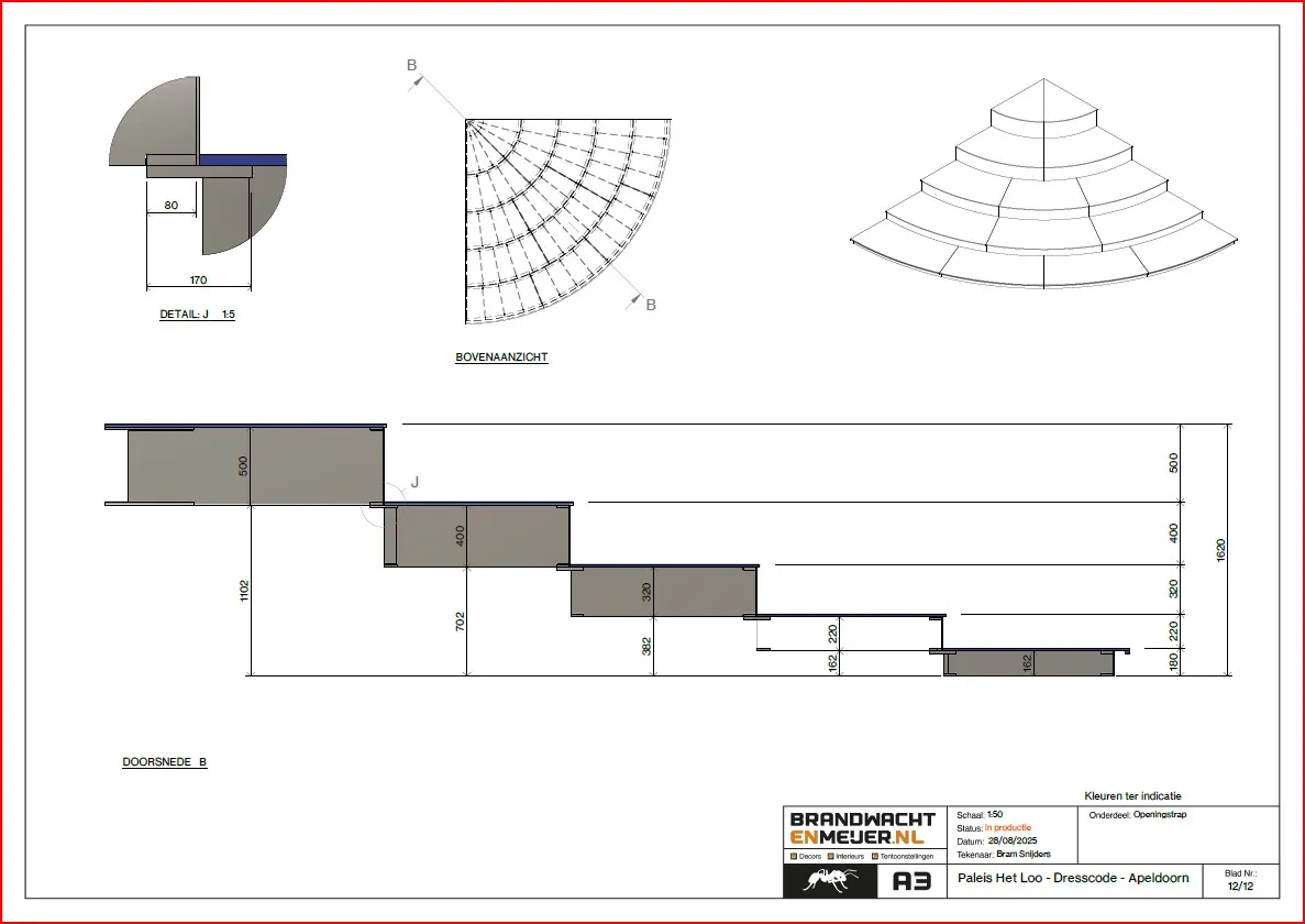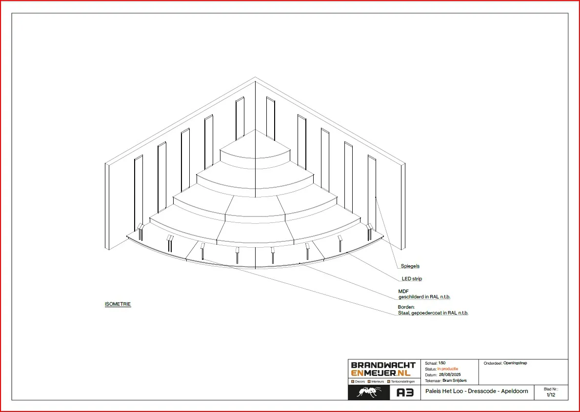 Kwart rond podium, opgebouwd in verschillende hoogtes.