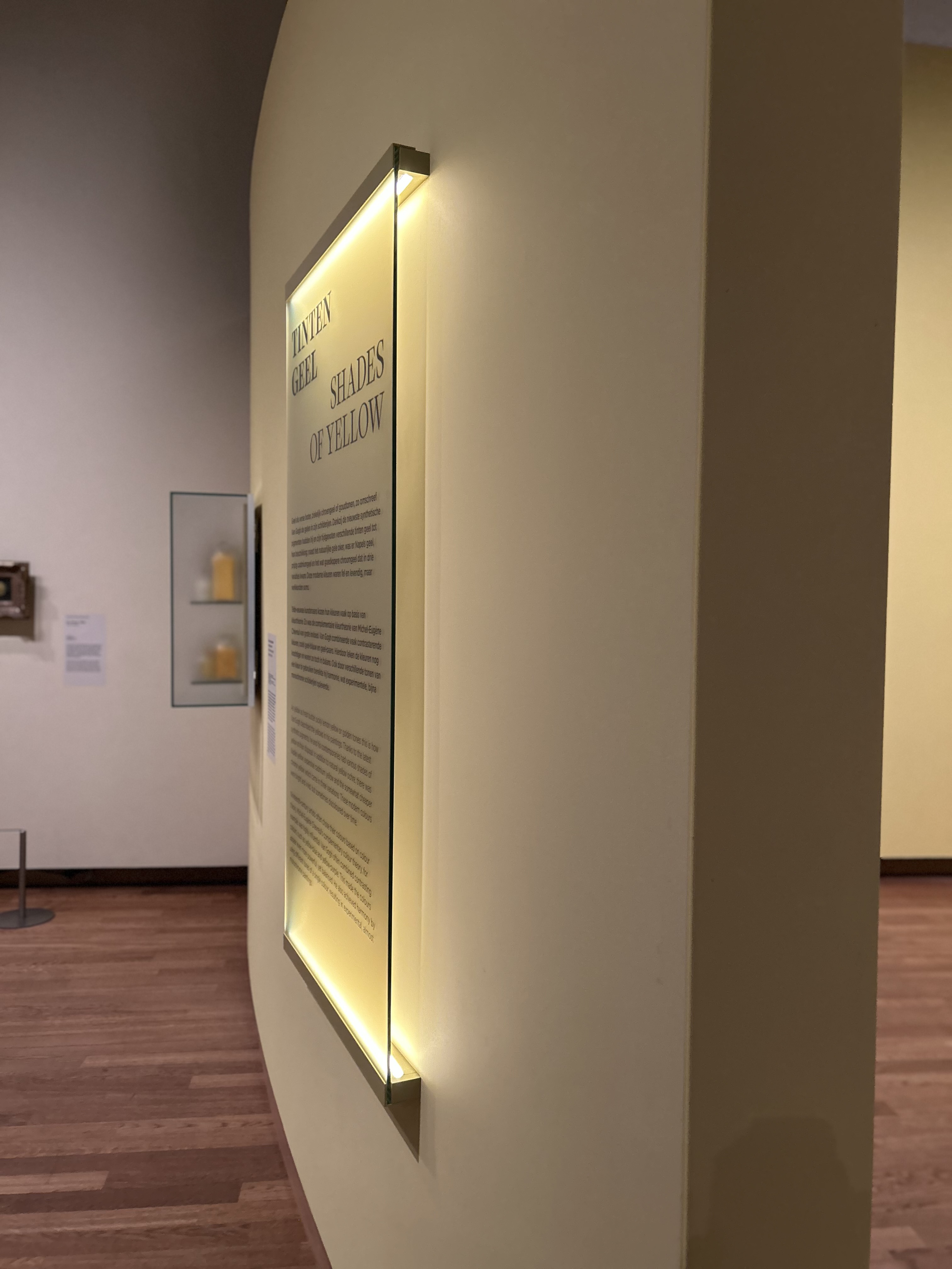 Glaspanelen met LED verlichting gebruikt voor tekstpanelen. Tekst is een losse folie op het glas en zal opnieuw beplakt moeten worden. Kleurtemperatuur en intensiteit van de verlichting is aanpasbaar