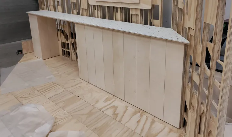 Vloer gemaakt van de multiplex rest stroming van het Wikkelhouse.