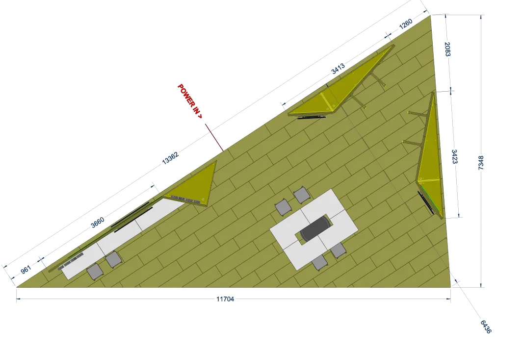 De vloer is modulair ontworpen en schuift in elkaar zoals een tent vloer.