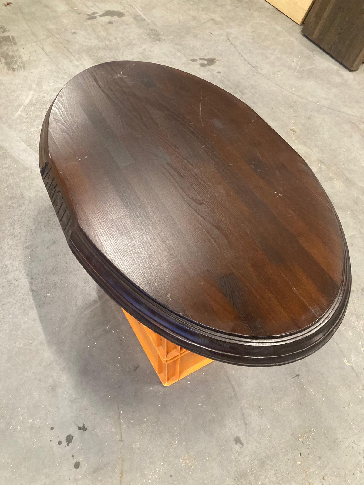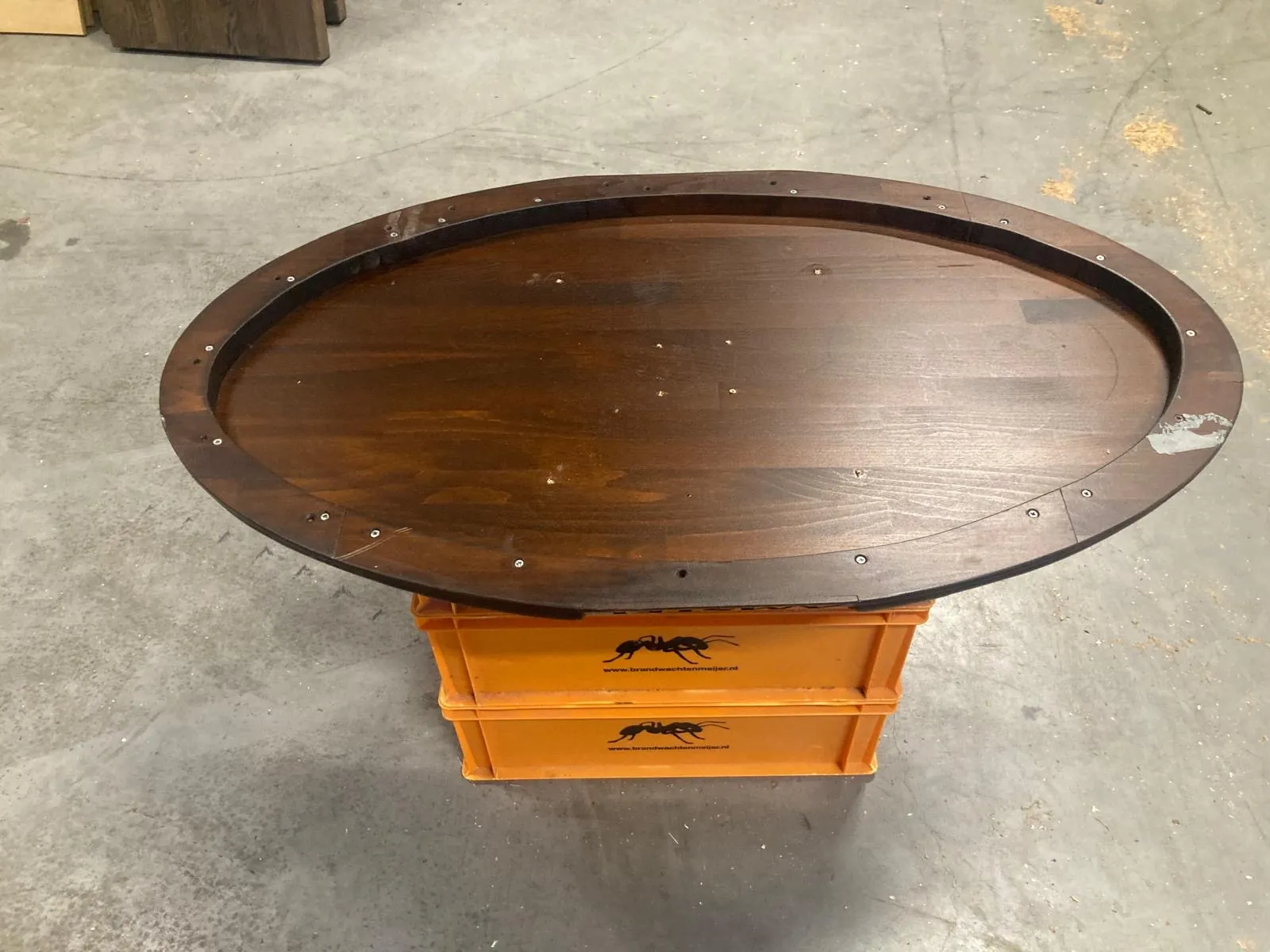 Ovaal tafelblad van Amstel bovenkant van het blad is 1035 mm dit loopt weids toe naar beneden waardoor de onderkant 1095