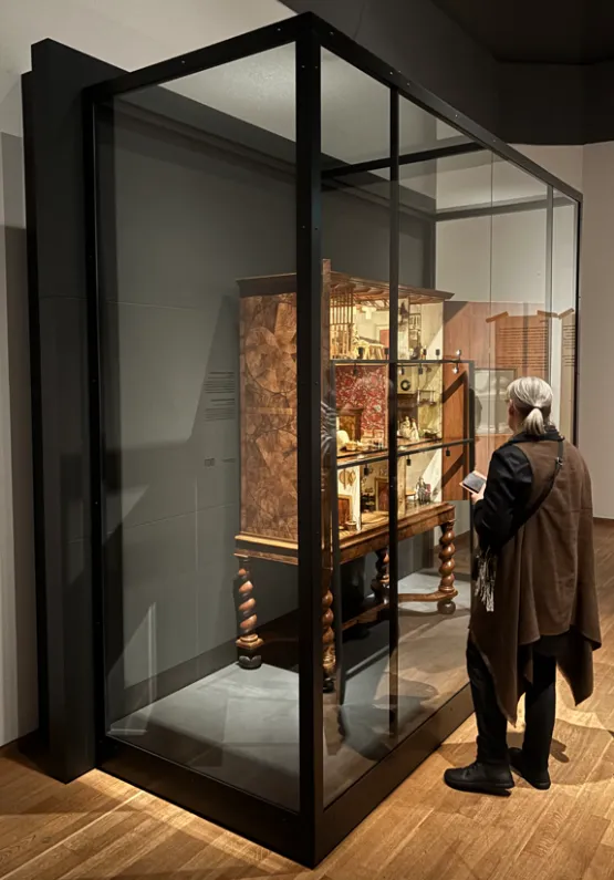 Grote vitrine uit Rijksmuseum Expositie "Thuis in de 17e Eeuw"
