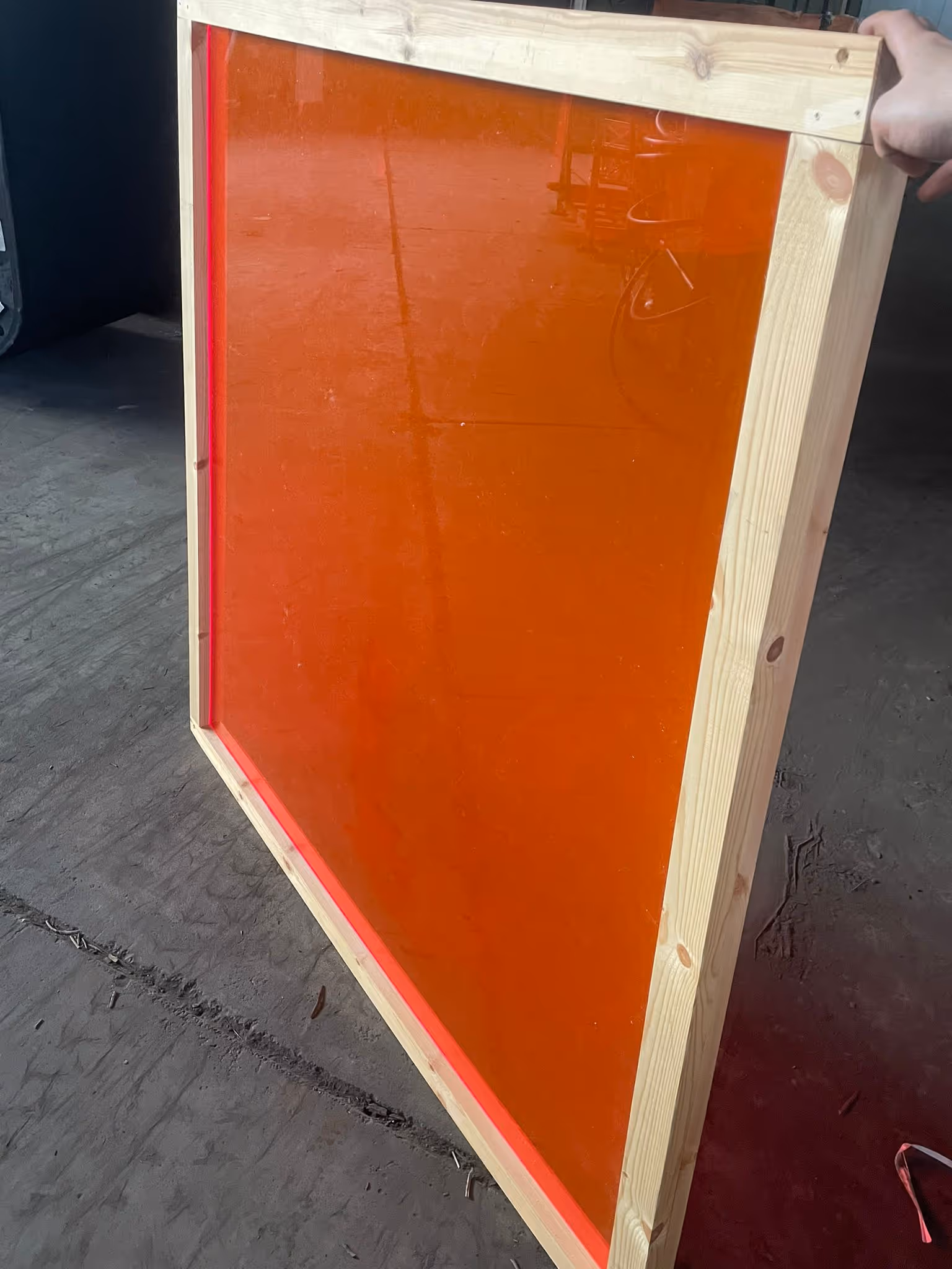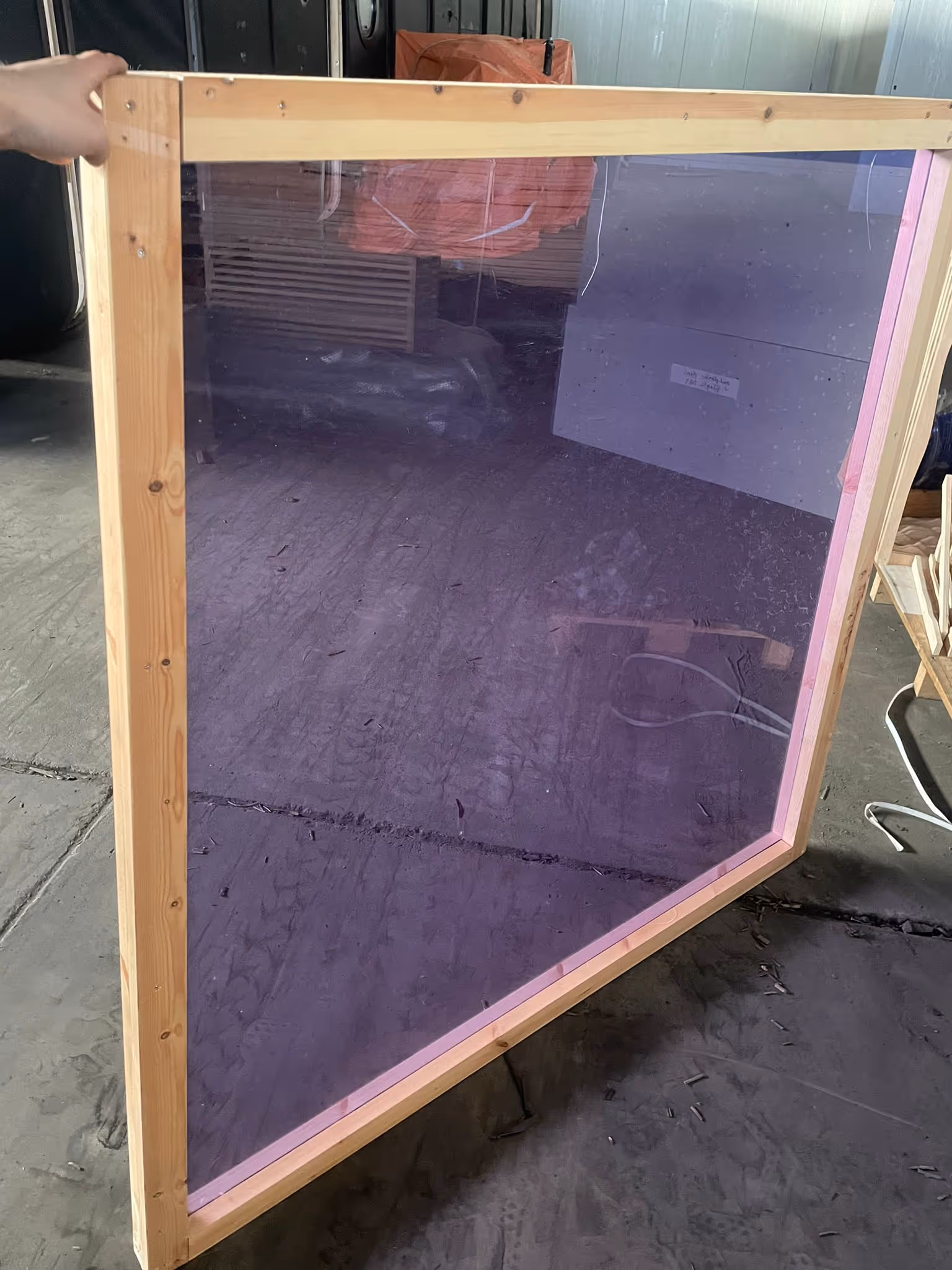 Trapezium frame met sponning en plexiglas.