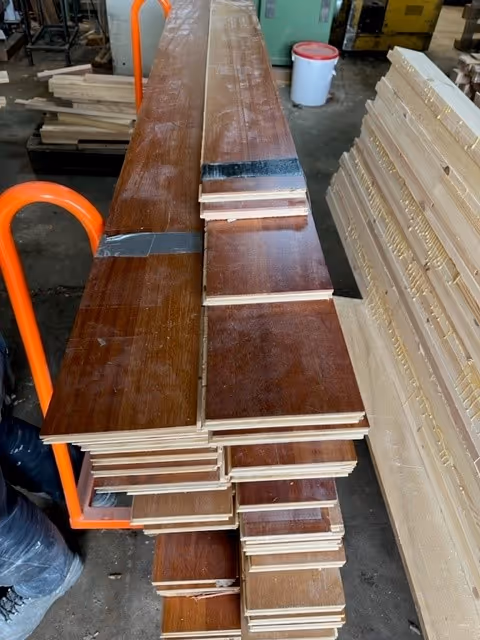 Iroko Vloer met multiplex onderlaag.