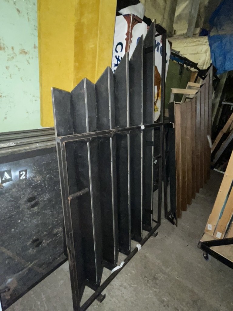 2 houten panelen - vormen boog boven bandpodium - zig zag - - Met stalen frames - -