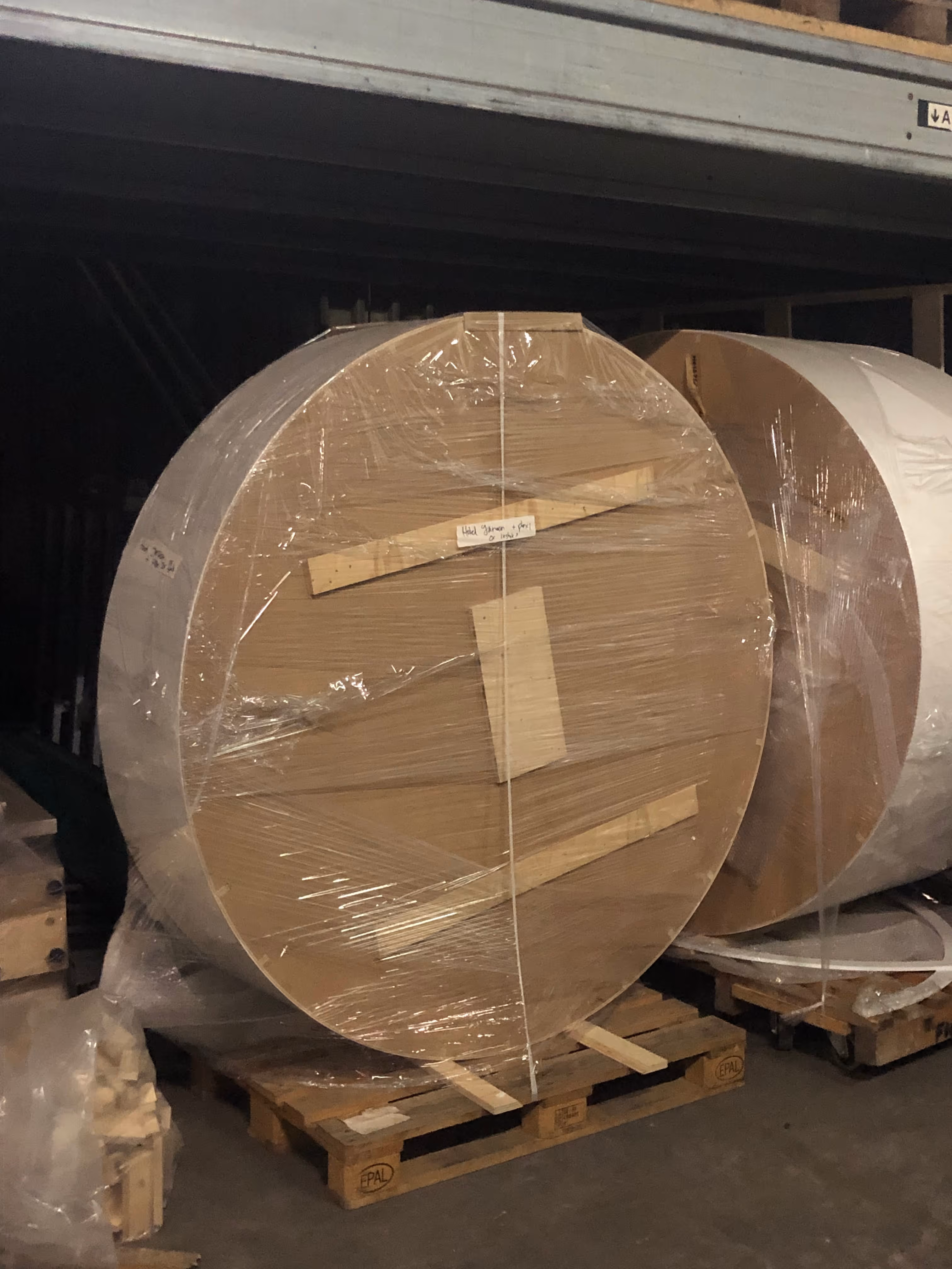 Ronde vitrines, geschilderd multiplex. Sikkens GN.01.89.