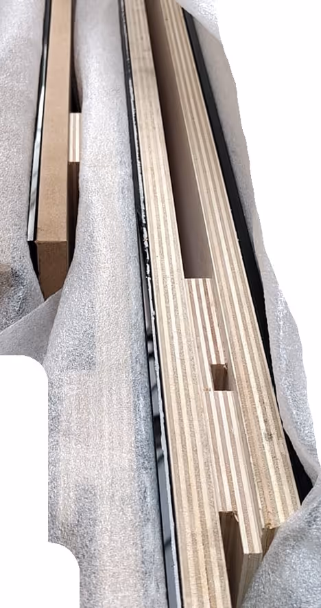 Spiegel 6mm poly geslepen op populieren achter plaat 18mm met sponning van 20mm breed;